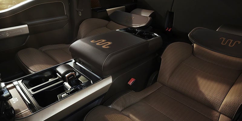 The 2020 F-150 comes with an outdoor temperature display, an 8-inch touch screen, keyless entry, a 12-volt power outlet, folding front and rear passenger seats, and a Wi-Fi hot spot. Additional options include dual-zone climate control, an interior work surface, power-adjustable pedals with memory settings, an auto-dimming rearview mirror, heated and cooled seats, a universal garage door opener, wireless charging, blue ambient lighting, wood accents, and a heated steering wheel. You can also choose voice recognition, 10-way power driver and passenger seats with memory settings, navigation, and an 18-speaker, 1,080-watt audio system.