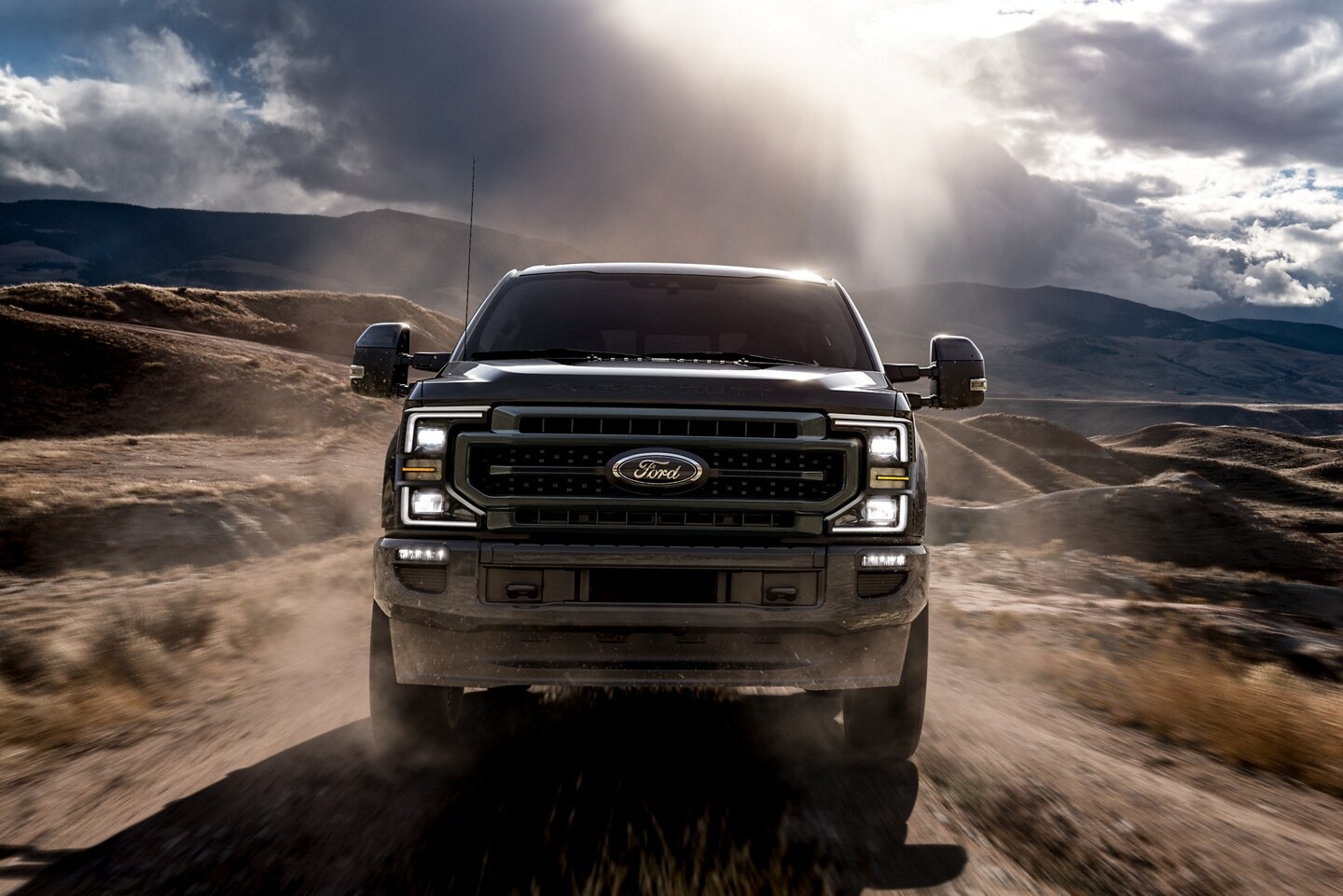The 2021 Ford Super Duty comes in six trim levels: XL, XLT, Lariat, King Ranch, Platinum, and Limited. The body looks boxy and powerful, and it has an imposing grille with the Ford Blue Oval in the center. The F-250 comes with manually-folding side mirrors. New front wheels and a redesigned front bumper let more air get to the brakes and the engine for better performance. The removable sculpted tailgate has body-colored Super Duty lettering. This truck's light, strong aluminum alloy prevents dents and damage from corrosion and increases fuel efficiency.