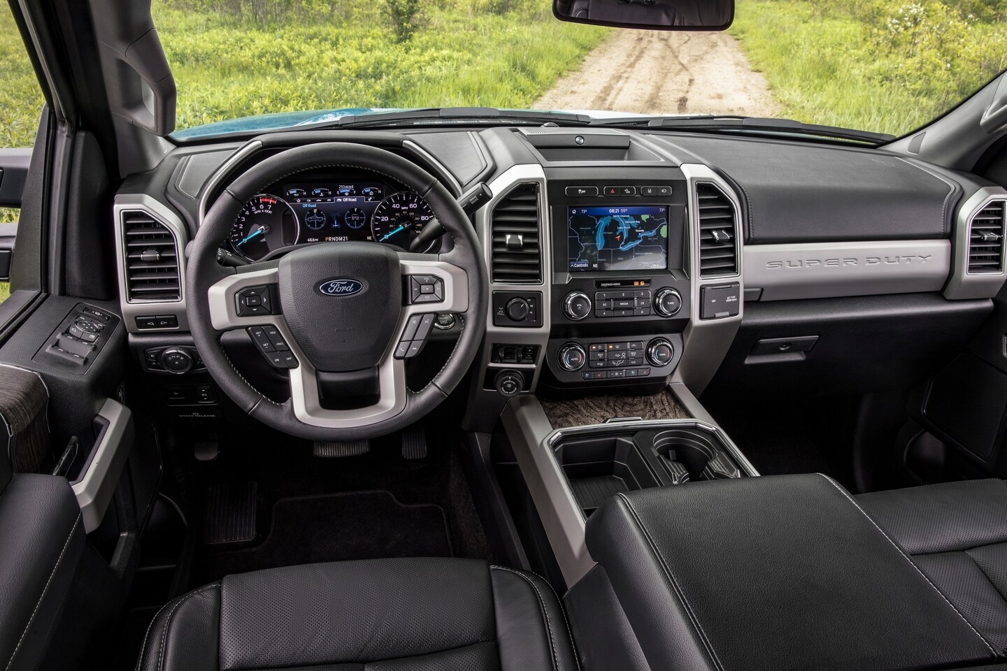 The Ford F-250 Super Duty is tough on the outside and luxurious on the inside. Vinyl upholstery is standard, and it comes with an impressive array of entertainment features. You'll get a pair of first-row LCD monitors, steering-wheel-mounted audio controls, and a four-speaker sound system. You can add SiriusXM satellite radio, a Wi-Fi hot spot, folding front and rear seats, two glove boxes, a push-button start, an auto-dimming rearview mirror, a heated steering wheel, remote start, keyless entry, and navigation. Several trims offer heated and ventilated suede or leather seats with memory settings.