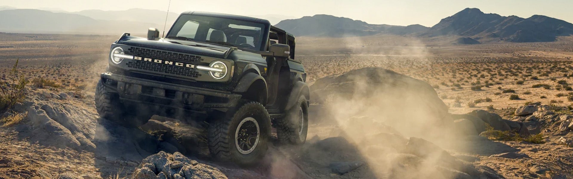 You have seven trims to find the Ford Bronco of your dreams, the Base, Big Bend, Black Diamond, Outer Banks, Badlands, Wildtrak, and the limited First Edition. This SUV comes as a two-door or four-door model with removable doors and roof. You can easily customize your 2022 Bronco with numerous add-on packages and optional features to make your Bronco unique to fit your driving needs.