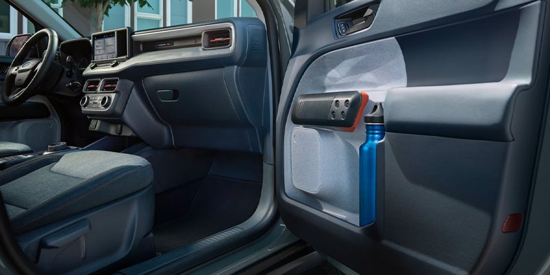 Slide inside the 2023 Ford Maverick to experience an interior designed with your comfort and convenience in mind. The XL and XLT feature five-passenger seating, manual six-way adjustable driver's seat, manual single-zone air conditioning, Bluetooth, a six-speaker sound system, and an 8-inch touchscreen with Apple CarPlay and Android Auto. You also get two 12-volt outlets, power locks and windows, two USB ports, and an in-cabin air filtration system. Moving up to the Lariat adds an eight-way power adjustable driver's seat, dual-zone automatic climate control, two rear USB ports, a leather-wrapped steering wheel, and ambient lighting.