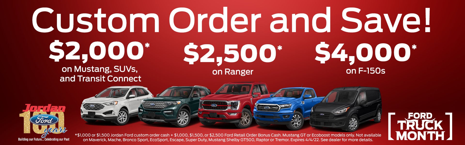 Looking to embark on a journey to find your perfect Ford? Look no further than Jordan Ford! Our custom showroom offers you the unique opportunity to tailor your dream Ford precisely to your preferences, from the color to the engine type. Say goodbye to the hassle of searching for a vehicle with the right features; we make it effortless to create your ideal Ford. Our dedicated team will guide you through every step of the customization process, ensuring you're well-informed and confident in your choices. Plus, we go the extra mile by scheduling your vehicle's delivery right here in the vibrant city of San Antonio, TX. Don't wait any longer; kickstart your Ford customization journey today by simply clicking on "Build and Price" for your desired vehicle below. At Jordan Ford, your dream ride is just a click away!