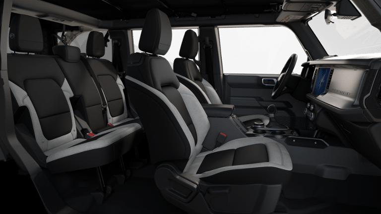 Equipment Group 101A, Sasquatch Graphics Package, Sasquatch Package (High Clearance Fender Flares, High Clearance Suspension, Position-Sensitive Bilstein Shock Absorbers, and Wheels: 17 Carbonized Gray Painted Aluminum), 4-Wheel Disc Brakes, 7 Speakers, ABS brakes, Air Conditioning, AM/FM radio: SiriusXM with 360L, AM/FM Stereo, Auto High-beam Headlights, Brake assist, Carbonized Gray Molded-In-Color Hard Top, Cloth Bucket Seats, Compass, Delay-off headlights, Driver door bin, Driver vanity mirror, Dual front impact airbags, Dual front side impact airbags, Electronic Stability Control, Emergency communication system: 911 Assist, Exterior Parking Camera Rear, Front anti-roll bar, Front Bucket Seats, Front Center Armrest, Front License Plate Bracket, Front reading lights, Front wheel independent suspension, Fully automatic headlights, Heated door mirrors, Illuminated entry, Integrated roll-over protection, Internet access capable: FordPass Connect, Low tire pressure warning, Occupant sensing airbag, Outside temperature display, Overhead airbag, Overhead console, Panic alarm, Passenger door bin, Passenger vanity mirror, Power door mirrors, Power steering, Power windows, Radio data system, Rear-Window Defroster & Washer, Remote keyless entry, Security system, SiriusXM w/360L, Speed control, Split folding rear seat, Steering wheel mounted audio controls, SYNC 4, Tachometer, Telescoping steering wheel, Tilt steering wheel, Traction control, Trip computer, Variably intermittent wipers, and Wheels: 16 Bright Polished Silver-Painted Steel.