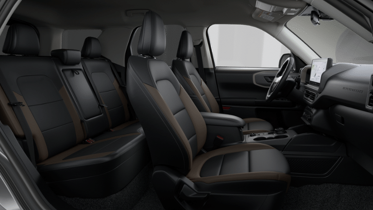 Convenience Package (Front Driver/Passenger Seat Back Map Pockets, Heated 8-Way Power Driver's Seat, LED Fog Lamps, and Premium Wrapped Steering Wheel), Equipment Group 200A Standard Package (AM/FM Stereo, Cloth with Easy-to-Clean Front Bucket Seats, SiriusXM with 360L, SYNC 4 with Enhanced Voice Recognition, and Wheels: 17 Carbonized Gray Painted Aluminum), Ford Connectivity Package (1-Year Included), Internet access capable: 5G Modem - Ford Connectivity Package, 4-Wheel Disc Brakes, 6 Speakers, ABS brakes, Air Conditioning, Alloy wheels, AM/FM radio: SiriusXM with 360L, Apple CarPlay/Android Auto, Auto High-beam Headlights, Automatic temperature control, Brake assist, Cargo Management System (Shelf/Divider/Table), Compass, Delay-off headlights, Driver door bin, Driver vanity mirror, Dual front impact airbags, Dual front side impact airbags, Electronic Stability Control, Emergency communication system: SYNC 4 911 Assist, Exterior Parking Camera Rear, Four wheel independent suspension, Front anti-roll bar, Front Bucket Seats, Front Center Armrest, Front License Plate Bracket, Front reading lights, Fully automatic headlights, Heated door mirrors, Illuminated entry, Knee airbag, Liftgate with Black BRONCO SPORT Lettering, Low tire pressure warning, Occupant sensing airbag, Outside temperature display, Overhead airbag, Overhead console, Panic alarm, Passenger door bin, Passenger vanity mirror, Power door mirrors, Power steering, Power windows, Radio data system, Rear anti-roll bar, Rear Parking Sensors, Rear reading lights, Rear seat center armrest, Rear window defroster, Rear window wiper, Remote keyless entry, Security system, Speed control, Speed-sensing steering, Speed-Sensitive Wipers, Split folding rear seat, Steering wheel mounted audio controls, Tachometer, Telescoping steering wheel, Tilt steering wheel, Traction control, Trip computer, and Variably intermittent wipers.