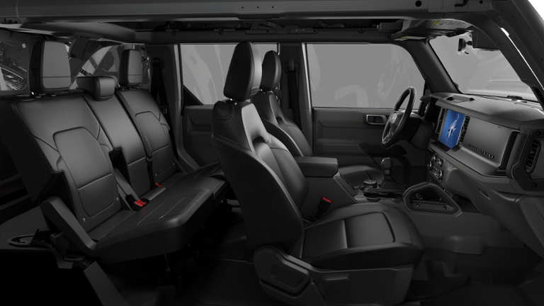 Ford Connectivity Package (1-Year Included), 4-Wheel Disc Brakes, 4.46 Axle Ratio, 7 Speakers, ABS brakes, Air Conditioning, Alloy wheels, AM/FM radio: SiriusXM with 360L, AM/FM Stereo, Auto High-beam Headlights, Brake assist, Carbonized Gray Molded-in-Color Hard Top, Cloth Bucket Seats, Compass, Delay-off headlights, Driver door bin, Driver vanity mirror, Dual front impact airbags, Dual front side impact airbags, Electronic Stability Control, Emergency communication system: 911 Assist, Exterior Parking Camera Rear, Front anti-roll bar, Front Bucket Seats, Front Center Armrest, Front License Plate Bracket, Front reading lights, Front wheel independent suspension, Fully automatic headlights, Hard Top Sound Deadening Headliner, Heated door mirrors, Illuminated entry, Integrated roll-over protection, Low tire pressure warning, Occupant sensing airbag, Outside temperature display, Overhead airbag, Overhead console, Panic alarm, Passenger door bin, Passenger vanity mirror, Power door mirrors, Power steering, Power windows, Radio data system, Rear-Window Defroster and Washer, Remote keyless entry, Security system, SiriusXM with 360L, Speed control, Split folding rear seat, Steering wheel mounted audio controls, SYNC 4, Tachometer, Telescoping steering wheel, Tilt steering wheel, Traction control, Trip computer, Variably intermittent wipers, and Wheels: 17 Carbonized Gray-Painted Aluminum.