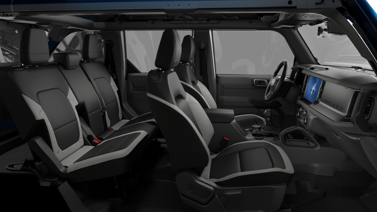 Ford Connectivity Package (1-Year Included), 4-Wheel Disc Brakes, 4.46 Axle Ratio, 7 Speakers, ABS brakes, Air Conditioning, Alloy wheels, AM/FM radio: SiriusXM with 360L, AM/FM Stereo, Auto High-beam Headlights, Brake assist, Carbonized Gray Molded-in-Color Hard Top, Cloth Bucket Seats, Compass, Delay-off headlights, Driver door bin, Driver vanity mirror, Dual front impact airbags, Dual front side impact airbags, Electronic Stability Control, Emergency communication system: 911 Assist, Exterior Parking Camera Rear, Front anti-roll bar, Front Bucket Seats, Front Center Armrest, Front License Plate Bracket, Front reading lights, Front wheel independent suspension, Fully automatic headlights, Hard Top Sound Deadening Headliner, Heated door mirrors, Illuminated entry, Integrated roll-over protection, Low tire pressure warning, Occupant sensing airbag, Outside temperature display, Overhead airbag, Overhead console, Panic alarm, Passenger door bin, Passenger vanity mirror, Power door mirrors, Power steering, Power windows, Radio data system, Rear-Window Defroster and Washer, Remote keyless entry, Security system, SiriusXM with 360L, Speed control, Split folding rear seat, Steering wheel mounted audio controls, SYNC 4, Tachometer, Telescoping steering wheel, Tilt steering wheel, Traction control, Trip computer, Variably intermittent wipers, and Wheels: 17 Carbonized Gray-Painted Aluminum.