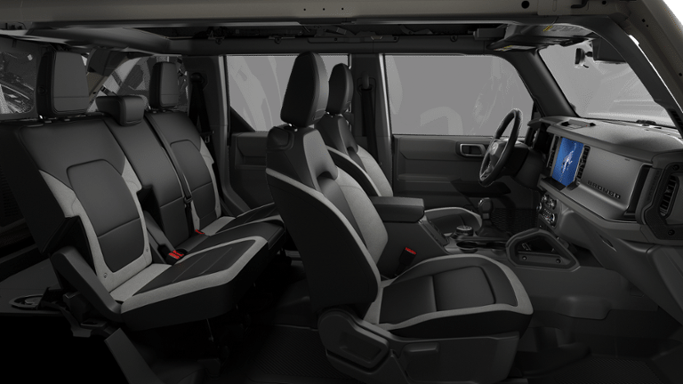 Ford Connectivity Package (1-Year Included), 4-Wheel Disc Brakes, 4.46 Axle Ratio, 7 Speakers, ABS brakes, Air Conditioning, Alloy wheels, AM/FM radio: SiriusXM with 360L, AM/FM Stereo, Auto High-beam Headlights, Brake assist, Carbonized Gray Molded-in-Color Hard Top, Cloth Bucket Seats, Compass, Delay-off headlights, Driver door bin, Driver vanity mirror, Dual front impact airbags, Dual front side impact airbags, Electronic Stability Control, Emergency communication system: 911 Assist, Exterior Parking Camera Rear, Front anti-roll bar, Front Bucket Seats, Front Center Armrest, Front License Plate Bracket, Front reading lights, Front wheel independent suspension, Fully automatic headlights, Hard Top Sound Deadening Headliner, Heated door mirrors, Illuminated entry, Integrated roll-over protection, Low tire pressure warning, Occupant sensing airbag, Outside temperature display, Overhead airbag, Overhead console, Panic alarm, Passenger door bin, Passenger vanity mirror, Power door mirrors, Power steering, Power windows, Radio data system, Rear-Window Defroster and Washer, Remote keyless entry, Security system, SiriusXM with 360L, Speed control, Split folding rear seat, Steering wheel mounted audio controls, SYNC 4, Tachometer, Telescoping steering wheel, Tilt steering wheel, Traction control, Trip computer, Variably intermittent wipers, and Wheels: 17 Carbonized Gray-Painted Aluminum.