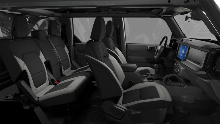 Ford Connectivity Package (1-Year Included), 4-Wheel Disc Brakes, 4.46 Axle Ratio, 7 Speakers, ABS brakes, Air Conditioning, Alloy wheels, AM/FM radio: SiriusXM with 360L, AM/FM Stereo, Auto High-beam Headlights, Brake assist, Carbonized Gray Molded-in-Color Hard Top, Cloth Bucket Seats, Compass, Delay-off headlights, Driver door bin, Driver vanity mirror, Dual front impact airbags, Dual front side impact airbags, Electronic Stability Control, Emergency communication system: 911 Assist, Exterior Parking Camera Rear, Front anti-roll bar, Front Bucket Seats, Front Center Armrest, Front License Plate Bracket, Front reading lights, Front wheel independent suspension, Fully automatic headlights, Hard Top Sound Deadening Headliner, Heated door mirrors, Illuminated entry, Integrated roll-over protection, Low tire pressure warning, Occupant sensing airbag, Outside temperature display, Overhead airbag, Overhead console, Panic alarm, Passenger door bin, Passenger vanity mirror, Power door mirrors, Power steering, Power windows, Radio data system, Rear-Window Defroster and Washer, Remote keyless entry, Security system, SiriusXM with 360L, Speed control, Split folding rear seat, Steering wheel mounted audio controls, SYNC 4, Tachometer, Telescoping steering wheel, Tilt steering wheel, Traction control, Trip computer, Variably intermittent wipers, and Wheels: 17 Carbonized Gray-Painted Aluminum.