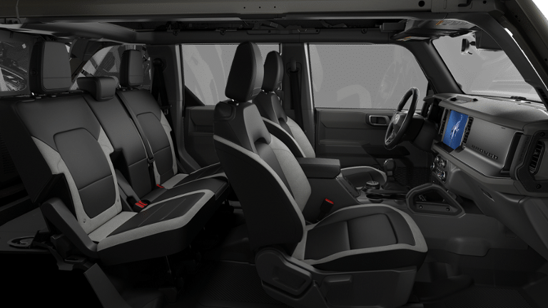 Ford Connectivity Package (1-Year Included), 4-Wheel Disc Brakes, 4.46 Axle Ratio, 7 Speakers, ABS brakes, Air Conditioning, Alloy wheels, AM/FM radio: SiriusXM with 360L, AM/FM Stereo, Auto High-beam Headlights, Brake assist, Carbonized Gray Molded-in-Color Hard Top, Cloth Bucket Seats, Compass, Delay-off headlights, Driver door bin, Driver vanity mirror, Dual front impact airbags, Dual front side impact airbags, Electronic Stability Control, Emergency communication system: 911 Assist, Exterior Parking Camera Rear, Front anti-roll bar, Front Bucket Seats, Front Center Armrest, Front License Plate Bracket, Front reading lights, Front wheel independent suspension, Fully automatic headlights, Hard Top Sound Deadening Headliner, Heated door mirrors, Illuminated entry, Integrated roll-over protection, Low tire pressure warning, Occupant sensing airbag, Outside temperature display, Overhead airbag, Overhead console, Panic alarm, Passenger door bin, Passenger vanity mirror, Power door mirrors, Power steering, Power windows, Radio data system, Rear-Window Defroster and Washer, Remote keyless entry, Security system, SiriusXM with 360L, Speed control, Split folding rear seat, Steering wheel mounted audio controls, SYNC 4, Tachometer, Telescoping steering wheel, Tilt steering wheel, Traction control, Trip computer, Variably intermittent wipers, and Wheels: 17 Carbonized Gray-Painted Aluminum.