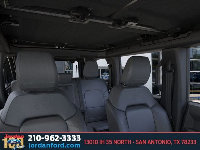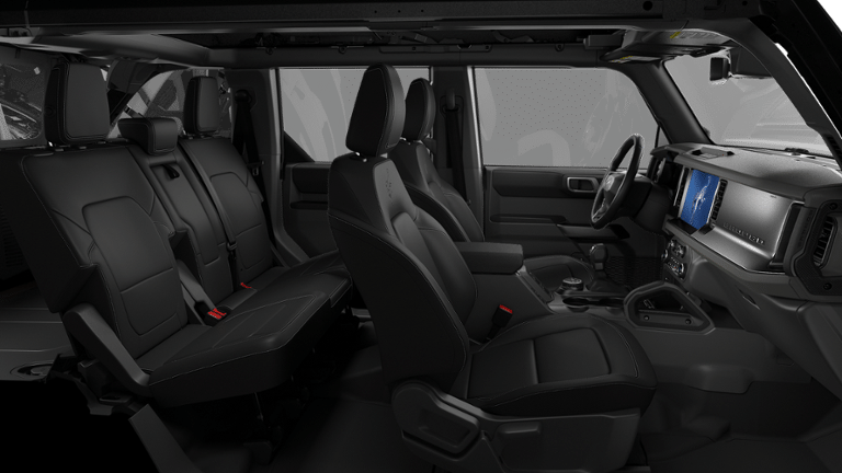 Ford Connectivity Package (1-Year Included), 18 Bright Machined Aluminum Wheels, 3.73 Axle Ratio, 4-Wheel Disc Brakes, 7 Speakers, ABS brakes, Air Conditioning, Alloy wheels, AM/FM radio: SiriusXM with 360L, AM/FM Stereo, Auto High-beam Headlights, Auto-dimming Rear-View mirror, Automatic temperature control, Brake assist, Carbonized Gray Molded-in-Color Hard Top, Compass, Connected Navigation, Delay-off headlights, Driver door bin, Driver vanity mirror, Dual front impact airbags, Dual front side impact airbags, Electronic Stability Control, Emergency communication system: 911 Assist, Exterior Parking Camera Rear, Front anti-roll bar, Front Bucket Seats, Front Center Armrest, Front dual zone A/C, Front fog lights, Front License Plate Bracket, Front reading lights, Front wheel independent suspension, Fully automatic headlights, Hard Top Sound Deadening Headliner, Heated door mirrors, Heated front seats, Heated Leather-Trimmed/Vinyl Bucket Seats, Heated steering wheel, Illuminated entry, Integrated roll-over protection, Leather Shift Knob, Low tire pressure warning, Navigation system: Connected Navigation, Occupant sensing airbag, Outside temperature display, Overhead airbag, Overhead console, Panic alarm, Passenger door bin, Passenger vanity mirror, Power door mirrors, Power driver seat, Power passenger seat, Power steering, Power windows, Radio data system, Rear seat center armrest, Rear-Window Defroster and Washer, Remote keyless entry, Security system, SiriusXM with 360L, Speed control, Split folding rear seat, Steering wheel mounted audio controls, SYNC 4, Tachometer, Telescoping steering wheel, Tilt steering wheel, Traction control, Trip computer, Variably intermittent wipers, and Voltmeter.