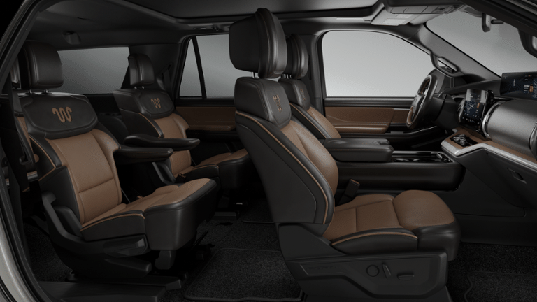 Ford Connectivity Package (1-Year Included), 22 Speakers, 3.73 Axle Ratio, 3rd row seats: split-bench, 4-Wheel Disc Brakes, ABS brakes, Adaptive suspension, Adjustable pedals, Air Conditioning, Alloy wheels, AM/FM radio: SiriusXM with 360L, Apple CarPlay/Android Auto, Auto High-beam Headlights, Auto-dimming door mirrors, Auto-dimming Rear-View mirror, Automatic temperature control, Brake assist, Bumpers: body-color, Compass, Delay-off headlights, Driver door bin, Driver vanity mirror, Dual front impact airbags, Dual front side impact airbags, Electronic Stability Control, Emergency communication system: 911 Assist, Exterior Parking Camera Rear, Ford Digital Experience, Four wheel independent suspension, Front anti-roll bar, Front Bucket Seats, Front Center Armrest, Front dual zone A/C, Front License Plate Bracket, Front reading lights, Fully automatic headlights, Garage door transmitter, Genuine wood dashboard insert, Genuine wood door panel insert, Heated door mirrors, Heated front seats, Heated rear seats, Heated steering wheel, Heated/Ventilated Premium Del Rio Leather Front Captain's Chairs, Illuminated entry, Leather steering wheel, Low tire pressure warning, Memory seat, Navigation System, Occupant sensing airbag, Outside temperature display, Overhead airbag, Overhead console, Panic alarm, Passenger door bin, Passenger vanity mirror, Pedal memory, Power door mirrors, Power driver seat, Power moonroof: Vista Roof, Power passenger seat, Power steering, Power windows, Radio data system, Radio: B&O Unleashed Sound System by Bang & Olufsen, Rain sensing wipers, Rear air conditioning, Rear anti-roll bar, Rear reading lights, Rear window defroster, Rear window wiper, Reclining 3rd row seat, Remote keyless entry, Security system, SiriusXM with 360L, Speed control, Speed-sensing steering, Speed-Sensitive Wipers, Split folding rear seat, Spoiler, Steering wheel memory, Steering wheel mounted audio controls, Tachometer, Telescoping steering wheel, Tilt steering wheel, Traction control, Trip computer, Turn signal indicator mirrors, Variably intermittent wipers, Ventilated front seats, Voltmeter, and Wheels: 22 x 9.0 Diamond Cut Machined Face Aluminum.