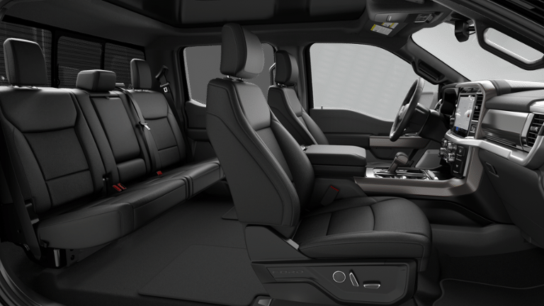 Ford Connectivity Package (1-Year Included), FX4 Off-Road Package (4x4 FX4 Off-Road Bodyside Decal, Hill Descent Control, Monotube Rear Shocks, Off-Road Tuned Front Shock Absorbers, and Tray Style Floor Liner Without Carpet Mats), Internet access capable: 5G Modem - Ford Connectivity Package, Lariat Black Appearance Package (ActiveX Trimmed Bucket Seats, Black Exterior Badging, Black Grille, Black Taillamp Bezels, Body-Color Front and Rear Bumpers, Body-Color Skull Caps and Door Handles, Dark Interior Appliques, and Gray Box Side Decal), Tow/Haul Package (Integrated Trailer Brake Controller), 3.5L PowerBoost Full-Hybrid V6, 4WD, 4-Wheel Disc Brakes, 8 Speakers, ABS brakes, Air Conditioning, Alloy wheels, AM/FM radio: SiriusXM with 360L, Auto High-beam Headlights, Auto-dimming door mirrors, Auto-dimming Rear-View mirror, Automatic temperature control, Brake assist, Bumpers: chrome, Chrome wheels, Compass, Delay-off headlights, Driver door bin, Driver vanity mirror, Driver's Side SecuriCode Keyless-Entry Keypad, Dual front impact airbags, Dual front side impact airbags, Electronic Stability Control, Emergency communication system: SYNC 4 911 Assist, Front anti-roll bar, Front Bucket Seats, Front Center Armrest, Front dual zone A/C, Front fog lights, Front License Plate Bracket, Front reading lights, Front wheel independent suspension, Fully automatic headlights, Garage door transmitter, Head-Up Display, Heated door mirrors, Heated front seats, Heated steering wheel, Illuminated entry, Low tire pressure warning, Memory seat, Navigation system: Connected Navigation, Occupant sensing airbag, Outside temperature display, Overhead airbag, Overhead console, Panic alarm, Passenger door bin, Passenger vanity mirror, Power door mirrors, Power driver seat, Power passenger seat, Power steering, Power windows, Pro Power Onboard - 7.2KW, Radio data system, Radio: B&O Sound System by Bang and Olufsen, Rain sensing wipers, Rear reading lights, Rear seat center armrest, Rear step bumper, Rear window defroster, Remote keyless entry, Security system, Speed control, Split folding rear seat, Steering wheel mounted audio controls, SYNC 4 with Enhanced Voice Recognition, Tachometer, Telescoping steering wheel, Tilt steering wheel, Traction control, Trip computer, Turn signal indicator mirrors, Twin Panel Moonroof, Variably intermittent wipers, Ventilated front seats, and Wheels: 18 Chrome-Like PVD.