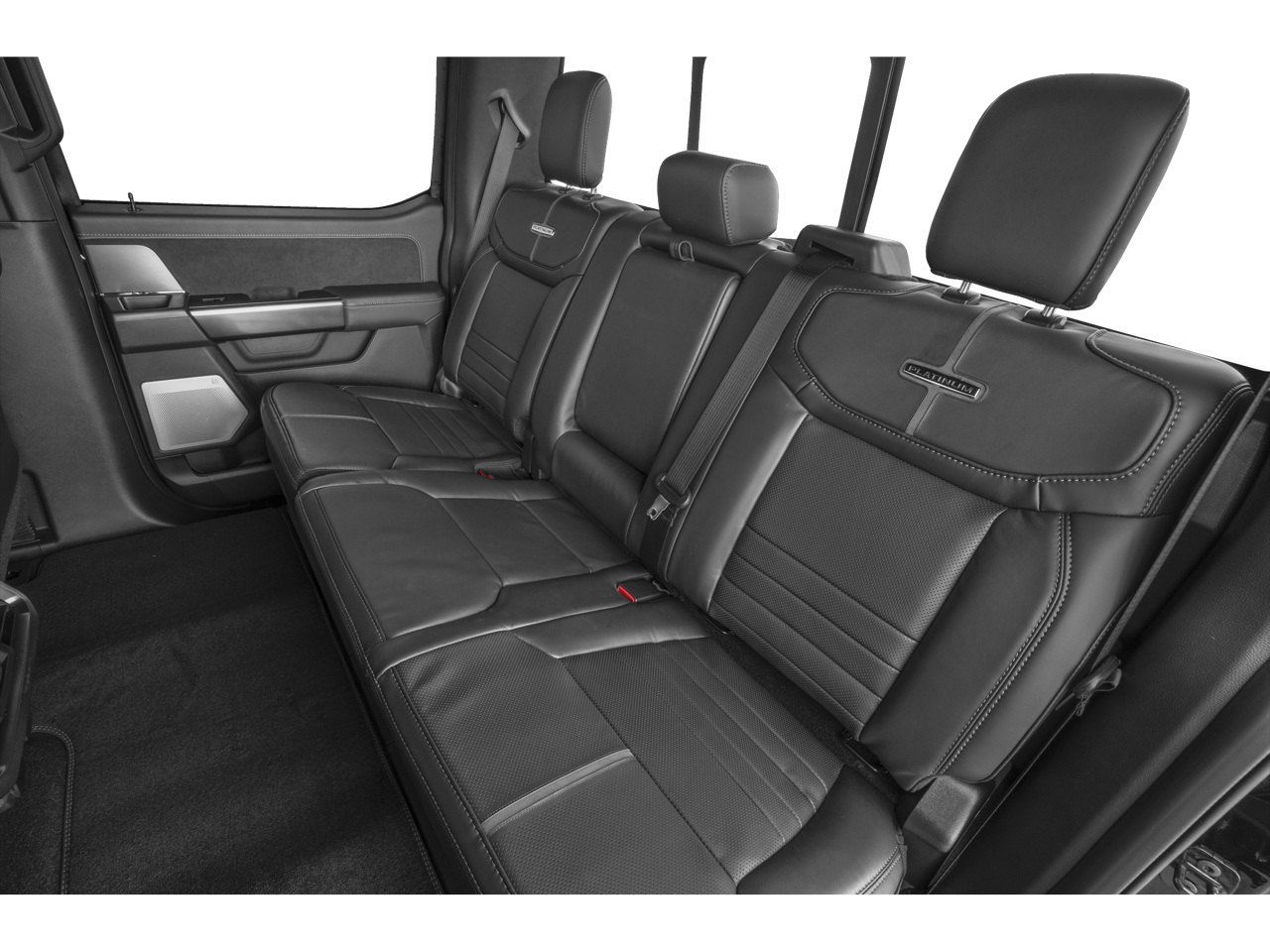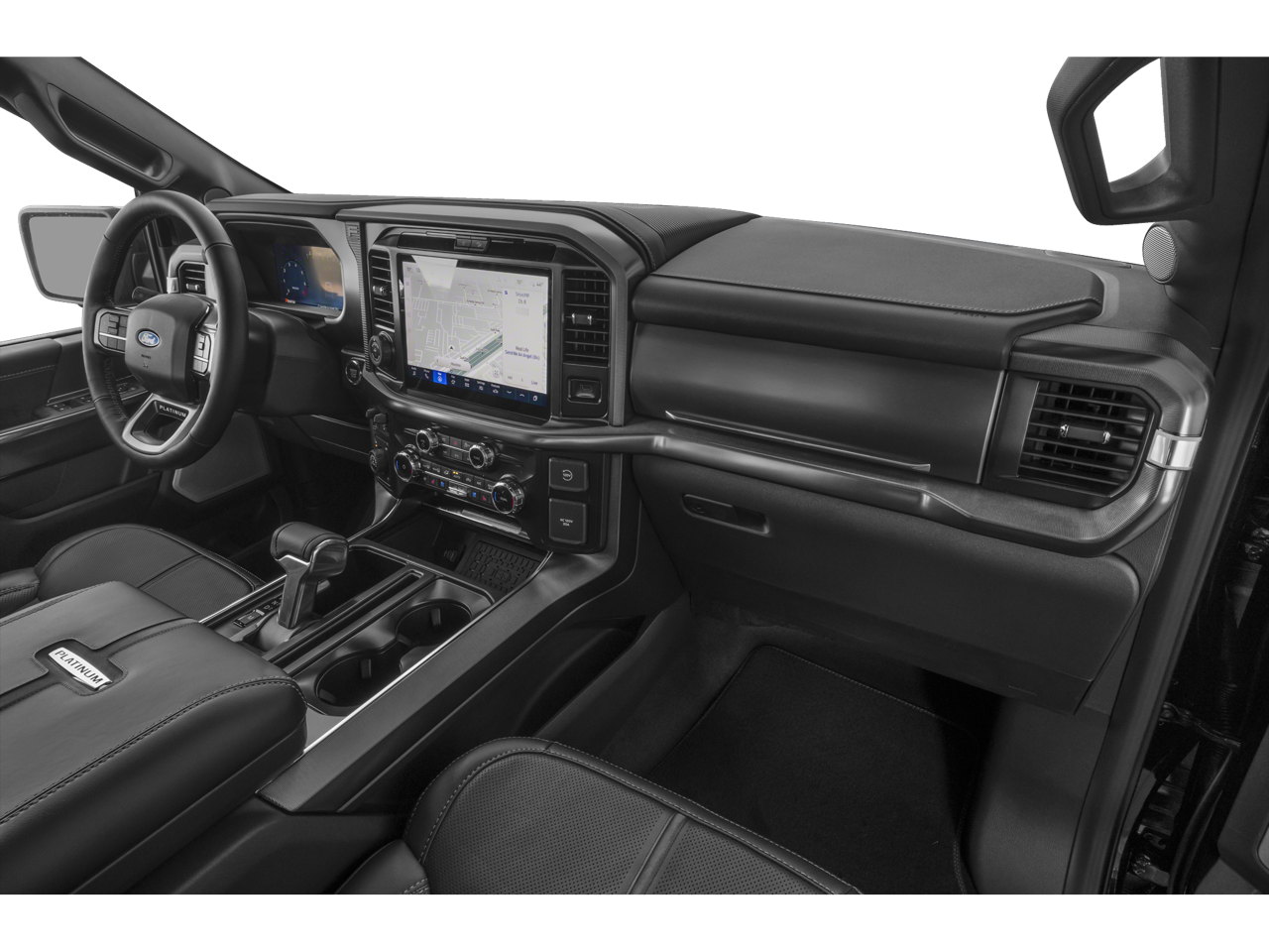 Ford Connectivity Package (1-Year Included), GVWR: 7,400 lbs Payload Package, Internet access capable: 5G Modem - Ford Connectivity Package, Platinum Satin Appearance Package (Satin Single Exhaust), 4WD, 4-Wheel Disc Brakes, 8 Speakers, ABS brakes, Adjustable pedals, Air Conditioning, Alloy wheels, AM/FM radio: SiriusXM with 360L, Auto High-beam Headlights, Auto tilt-away steering wheel, Auto-dimming door mirrors, Auto-dimming Rear-View mirror, Automatic temperature control, Brake assist, Bumpers: body-color, Compass, Delay-off headlights, Driver door bin, Driver vanity mirror, Driver's Side SecuriCode Keyless-Entry Keypad, Dual front impact airbags, Dual front side impact airbags, Electronic Locking with 3.55 Axle Ratio, Electronic Stability Control, Emergency communication system: SYNC 4 911 Assist, Front anti-roll bar, Front Bucket Seats, Front Center Armrest, Front dual zone A/C, Front fog lights, Front License Plate Bracket, Front reading lights, Front wheel independent suspension, Fully automatic headlights, Garage door transmitter, Heated door mirrors, Heated front seats, Heated rear seats, Heated steering wheel, Illuminated entry, Leather steering wheel, Low tire pressure warning, Memory seat, Navigation system: Connected Navigation, Occupant sensing airbag, Outside temperature display, Overhead airbag, Overhead console, Panic alarm, Passenger door bin, Passenger vanity mirror, Pedal memory, Power door mirrors, Power driver seat, Power passenger seat, Power steering, Power windows, Pro Access Tailgate, Radio data system, Radio: B&O Sound System by Bang and Olufsen, Rain sensing wipers, Rear reading lights, Rear seat center armrest, Rear step bumper, Rear window defroster, Remote keyless entry, Security system, Speed control, Split folding rear seat, Steering wheel memory, Steering wheel mounted audio controls, SYNC 4 with Enhanced Voice Recognition, Tachometer, Telescoping steering wheel, Tilt steering wheel, Traction control, Trip computer, Turn signal indicator mirrors, Twin Panel Moonroof, Unique Multi-Contour Leather Bucket Seats, Variably intermittent wipers, Ventilated front seats, and Wheels: 20 Painted Gloss Ebony Black.