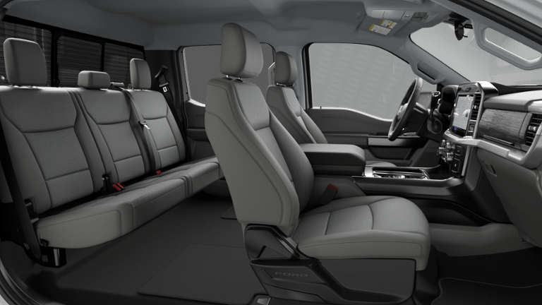 GVWR: 6,426 lbs Payload Package, Internet access capable: 5G Modem - Ford Connectivity Package, XLT Chrome Appearance Package (6 Angular Bright Anodized Step Bar, Black Painted Mesh Grille with Chrome Center Bar, Chrome Door Handles, Chrome Front and Rear Bumpers, Chrome Single-Tip Exhaust, and Wheels: 20 Chrome-Like PVD), 3.55 Axle Ratio, 4-Wheel Disc Brakes, 6 Speakers, ABS brakes, Air Conditioning, Alloy wheels, AM/FM radio: SiriusXM with 360L, Auto High-beam Headlights, Brake assist, Bumpers: body-color, Cloth 40/Console/40 Front Seats, Compass, Delay-off headlights, Driver door bin, Driver vanity mirror, Dual front impact airbags, Dual front side impact airbags, Electronic Stability Control, Emergency communication system: SYNC 4 911 Assist, Front anti-roll bar, Front Center Armrest, Front fog lights, Front License Plate Bracket, Front reading lights, Front wheel independent suspension, Fully automatic headlights, Heated door mirrors, Illuminated entry, Low tire pressure warning, Occupant sensing airbag, Outside temperature display, Overhead airbag, Overhead console, Panic alarm, Passenger door bin, Passenger vanity mirror, Power door mirrors, Power steering, Power windows, Radio data system, Radio: AM/FM Stereo with SiriusXM 360L, Rear reading lights, Rear step bumper, Rear window defroster, Remote keyless entry, Security system, Speed control, Split folding rear seat, Steering wheel mounted audio controls, SYNC 4 with Enhanced Voice Recognition, Tachometer, Telescoping steering wheel, Tilt steering wheel, Traction control, Trip computer, Variably intermittent wipers, and Wheels: 17 Silver Painted Aluminum.