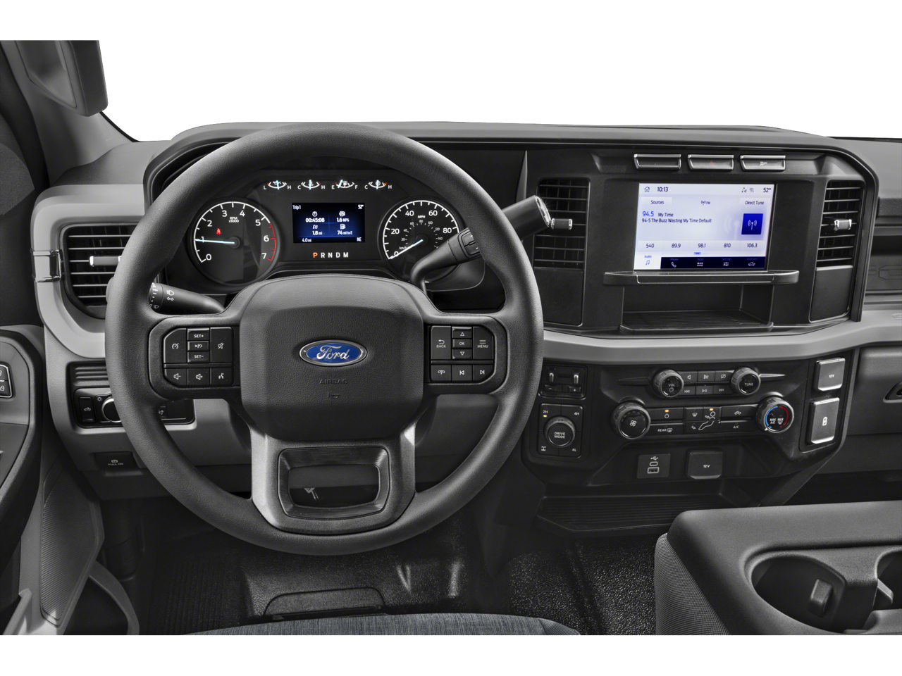 Ford Connectivity Package (1-Year Included), GVWR: 10,000 Lb Payload Package, Internet access capable: 5G Modem - Ford Connectivity Package, Order Code 600A (17 Argent Painted Steel Wheels, 3.73 Axle Ratio, HD Vinyl 40/20/40 Split Bench Seat, Radio: AM/FM Stereo with MP3 Player, and SYNC 4), 4-Wheel Disc Brakes, 6 Speakers, ABS brakes, Air Conditioning, AM/FM radio, Brake assist, Compass, Delay-off headlights, Dual front impact airbags, Dual front side impact airbags, Electronic Stability Control, Emergency communication system: SYNC 4 911 Assist, Exterior Parking Camera Rear, Front anti-roll bar, Front Center Armrest w/Storage, Front License Plate Bracket, Front reading lights, Front wheel independent suspension, Fully automatic headlights, Heated door mirrors, Illuminated entry, Low tire pressure warning, Outside temperature display, Overhead airbag, Overhead console, Panic alarm, Passenger cancellable airbag, Passenger vanity mirror, Power door mirrors, Power steering, Power windows, Pro Power Onboard - 400W, Rear step bumper, Remote keyless entry, Security system, Speed control, Split folding rear seat, Steering wheel mounted audio controls, Tachometer, Telescoping steering wheel, Tilt steering wheel, Traction control, Trailer Brake Controller, Trip computer, Turn signal indicator mirrors, Upfitter Switches (6), and Variably intermittent wipers.