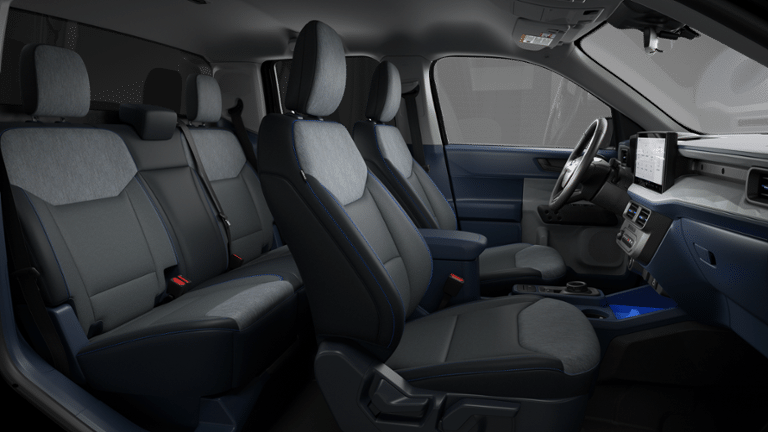 Ford Co-Pilot360 (Auto High Beams, BLIS with Cross-Traffic Alert and Trailer Coverage, Exit Warning, Intersection Assist, Lane-Keeping System, Power Glass Manual-Folding Mirrors, Pre-Collision Assist with Automatic Emergency Braking, Rear Cross Traffic Braking, Rear Parking Sensors, and Rear-View Camera), Ford Connectivity Package (1-Year Included), Internet access capable: 5G Modem - Ford Connectivity Package, XLT Luxury Package (Heated Mirror with Painted Black Skull Caps, Heated Seats, LED Box Lighting, Pro Power Onboard - 400W, Remote Start System, and Soft Vinyl Wrapped Heated Steering Wheel), 2.5L I-4 Hybrid, 2.91 Axle Ratio, 4-Wheel Disc Brakes, 6 Speakers, ABS brakes, Air Conditioning, Alloy wheels, AM/FM radio: SiriusXM with 360L, Apple CarPlay/Android Auto, Auto High-beam Headlights, Automatic temperature control, Brake assist, Bumpers: body-color, Compass, Delay-off headlights, Driver door bin, Driver vanity mirror, Dual front impact airbags, Dual front side impact airbags, Electronic Stability Control, Emergency communication system: SYNC 4 911 Assist, Exterior Parking Camera Rear, Front anti-roll bar, Front Bucket Seats, Front Center Armrest, Front reading lights, Front wheel independent suspension, Fully automatic headlights, Illuminated entry, Knee airbag, Low tire pressure warning, Occupant sensing airbag, Outside temperature display, Overhead airbag, Overhead console, Panic alarm, Passenger door bin, Passenger vanity mirror, Power door mirrors, Power steering, Power windows, Radio data system, Radio: AM/FM Stereo with 6 Speakers, Rear anti-roll bar, Rear seat center armrest, Rear step bumper, Remote keyless entry, Security system, SiriusXM with 360L, Speed control, Speed-sensing steering, Steering wheel mounted audio controls, SYNC 4 with Enhanced Voice Recognition, Telescoping steering wheel, Tilt steering wheel, Traction control, Trip computer, Unique Cloth Front Bucket Seats, and Wheels: 17 Carbonized Gray Painted Aluminum.