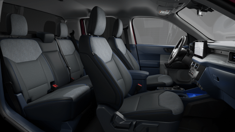 Ford Co-Pilot360 (Auto High Beams, BLIS with Cross-Traffic Alert and Trailer Coverage, Exit Warning, Intersection Assist, Lane-Keeping System, Power Glass Manual-Folding Mirrors, Pre-Collision Assist with Automatic Emergency Braking, Rear Cross Traffic Braking, Rear Parking Sensors, and Rear-View Camera), Ford Connectivity Package (1-Year Included), Internet access capable: 5G Modem - Ford Connectivity Package, XLT Luxury Package (Heated Mirror with Painted Black Skull Caps, Heated Seats, LED Box Lighting, Pro Power Onboard - 400W, Remote Start System, and Soft Vinyl Wrapped Heated Steering Wheel), 2.5L I-4 Hybrid, 2.91 Axle Ratio, 4-Wheel Disc Brakes, 6 Speakers, ABS brakes, Air Conditioning, Alloy wheels, AM/FM radio: SiriusXM with 360L, Apple CarPlay/Android Auto, Auto High-beam Headlights, Automatic temperature control, Brake assist, Bumpers: body-color, Compass, Delay-off headlights, Driver door bin, Driver vanity mirror, Dual front impact airbags, Dual front side impact airbags, Electronic Stability Control, Emergency communication system: SYNC 4 911 Assist, Exterior Parking Camera Rear, Four wheel independent suspension, Front anti-roll bar, Front Bucket Seats, Front Center Armrest, Front reading lights, Fully automatic headlights, Illuminated entry, Knee airbag, Low tire pressure warning, Occupant sensing airbag, Outside temperature display, Overhead airbag, Overhead console, Panic alarm, Passenger door bin, Passenger vanity mirror, Power door mirrors, Power steering, Power windows, Radio data system, Radio: AM/FM Stereo with 6 Speakers, Rear anti-roll bar, Rear seat center armrest, Rear step bumper, Remote keyless entry, Security system, SiriusXM with 360L, Speed control, Speed-sensing steering, Steering wheel mounted audio controls, SYNC 4 with Enhanced Voice Recognition, Telescoping steering wheel, Tilt steering wheel, Traction control, Trip computer, Unique Cloth Front Bucket Seats, and Wheels: 17 Carbonized Gray Painted Aluminum.