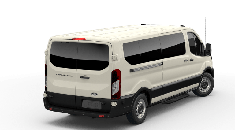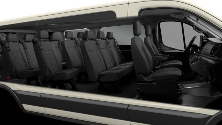 Ford Connectivity Package (1-Year Included), 15-Passenger Seats, 253-Degree Rear Door Opening, 3.73 Axle Ratio, 3rd row seats: split-bench, 4-Wheel Disc Brakes, 4th-Row Bench Seat, 8 Speakers, ABS brakes, Air Conditioning, Apple CarPlay/Android Auto, Auto High-beam Headlights, Brake assist, Cloth Front Bucket Seats, Delay-off headlights, Driver door bin, Driver vanity mirror, Driver's Seat Mounted Armrest, Dual front impact airbags, Dual front side impact airbags, Electronic Stability Control, Emergency communication system: 911 Assist, Front anti-roll bar, Front Bucket Seats, Front License Plate Bracket, Front reading lights, Front wheel independent suspension, Illuminated entry, Large Center Console, Low tire pressure warning, Navigation system: Connected Navigation, Occupant sensing airbag, Overhead airbag, Panic alarm, Passenger door bin, Passenger Running Board, Passenger seat mounted armrest, Passenger vanity mirror, Power door mirrors, Power steering, Power windows, Privacy Glass, Rain sensing wipers, Rear air conditioning, Rear window defroster, Rear-Window Defroster, Remote keyless entry, Speed control, Steering wheel mounted audio controls, SYNC 4, Tachometer, Telescoping steering wheel, Tilt steering wheel, Traction control, Variably intermittent wipers, and Wheels: 16 Steel with Full Silver Cover.