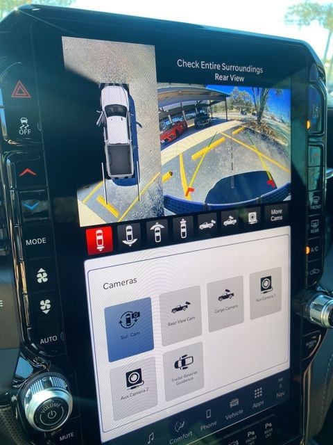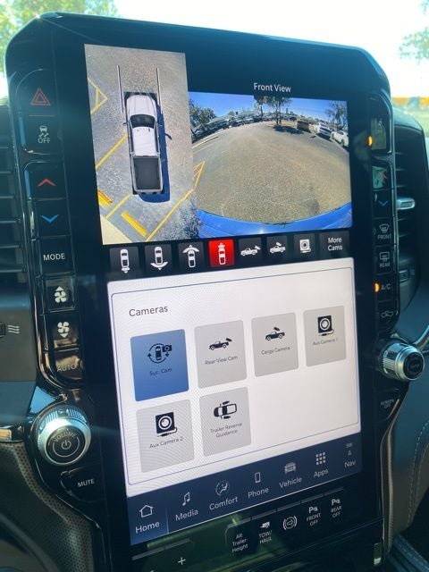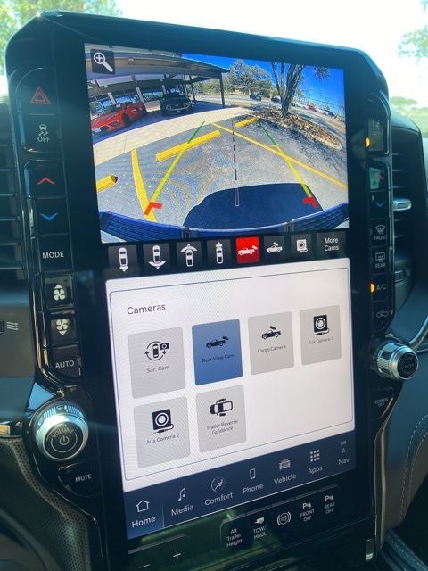 Diamond Black Crystal Pearlcoat, Red/Black/Ebony w/Ultra Premium Leather Seats, 115V Auxiliary Rear Power Outlet, 17 Speakers, 5th Wheel/Gooseneck Towing Prep Group, Active Lane Management System, Adaptive Steering System, Air Conditioning, Anti-Spin Differential Rear Axle, Auto Level Rear Air Suspension, Automatic temperature control, Bright Front Bumper, Bright Rear Bumper, Center Stop Lamp w/Cargo View Camera, Chrome Bumper Package, Clearance Lamps, Digital Rearview Mirror, Drowsy Driver Detection, Front dual zone A/C, harman/kardon® Speakers, LED Bed Lighting, Limited Level 1 Equipment Group, MOPAR Spray In Bedliner, Navigation System, Pickup Box, Power Deployable Running Boards, Power Sunroof, Quick Order Package 24M Limited, Radio: Uconnect 5 Nav w/14.4 Display, Safety Group, Surround View Camera System, Tow-Mode Camera (Wired), Tow-Mode Digital Rearview Mirror Package, Traffic Sign Recognition, Trailer Reverse Guidance, Trailer Tire Pressure Monitoring System, Vendor Painted Cargo Box, Vendor Painted Cargo Box Tracking, Wheels: 20 x 8 Diamond Cut Aluminum.